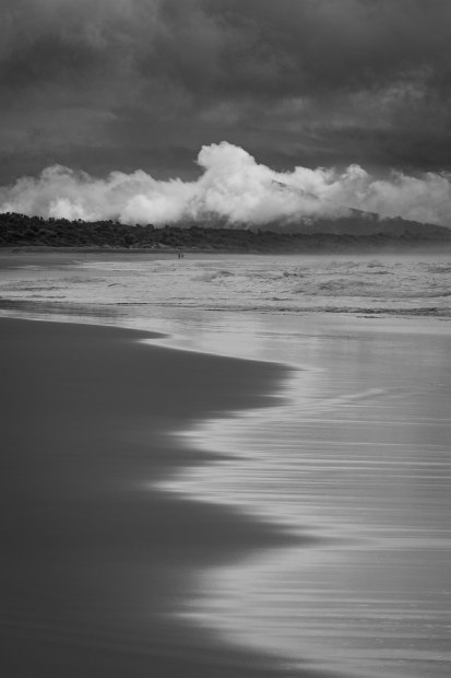 During a nice walk along the beach I could see a looming storm. As the clouds were darkening the sun came out to light the mountains and clouds in the distance giving a beautiful light to the scene.