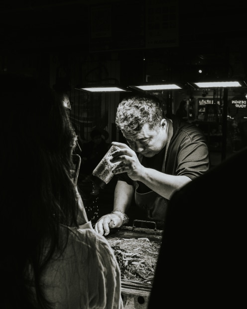 When you visit the Myeongdong Night Market in Seoul, look out for the seasoned stallholders who pour so much love, among other seasonings, into their food.