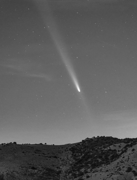 Comet C 2023 A3 Tsuchinshan-ATLAS crosses the sky over the Sicilian countryside, in southern Italy. The photo is part of my photographic project LA POETICA DEL CIELO b&w. I took this shot on October 14, 2024