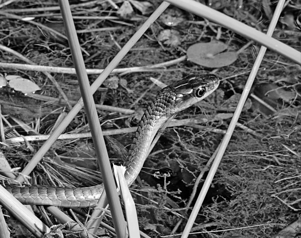 The snake seen amongst the Papyrus Grass stalks looking for prey.