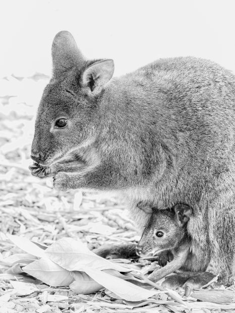 Mother and joey Pademelons feeding at Port Sorell, Tasmania
