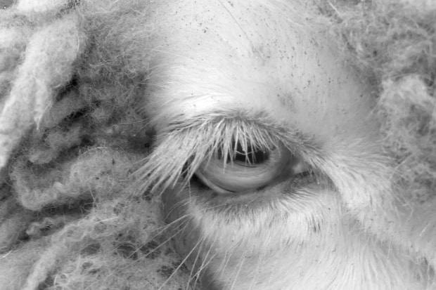 On a little getaway from the city, I ended up in WA's outback on a little farmstay. The weather was cold, windy and rainy. Fields partly flooded. On a stormy walk I noticed one of the two resident sheep had come close to the fence. It's wool so thick that the weather didn't seem to bother the sheep. He let me pet him on his forehead and nose which made him so chilled he closed his eyes... The look captured was just before he seemingly went to doze off despite the storm. In this picture "The Look" refers to the woolen hairstyle as well as to the calm expression in his eye.