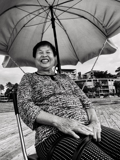 When I first saw Wei she was fishing with her husband on a wharf, seated under a huge sun umbrella, which she'd skilfully roped to her chair, so it wouldn't fly off in the wind. I found Wei fascinating and immediately asked her permission if I could photograph her. I will forever cherish my happy encounter with Wei and her lovely spontaneous smile.