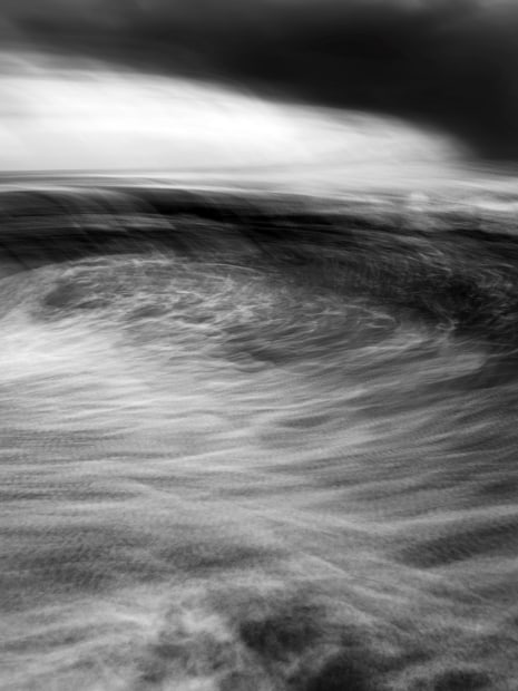 Long exposure of the rough surf, clouds and wind that washed away half of Wamberal Beach on the Central Coast.