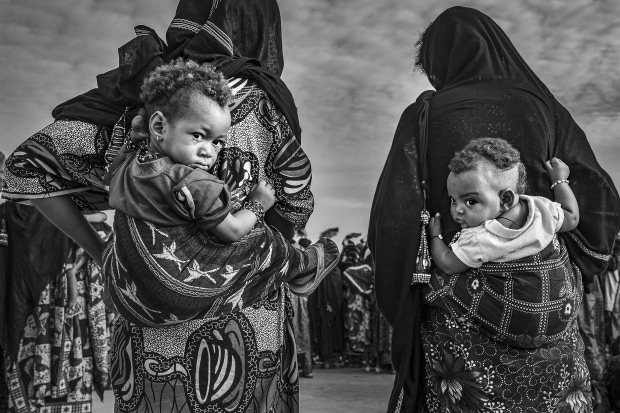In Niger Wooddabe, the festival called Guerewol hold in September every year, during this time ,younger man make-up carefully with drawing pattern on their face, they sing and dance in a line to attract younger woman attention. no matter those woman married or not, when opportunities arise, probably they would change their husband( or wife). these two younger mum carrying their babies went to the party, these two babies turned back to stare at me, maybe they were interested in my camera. they were so adorable. nobody knew who will be their new dad.