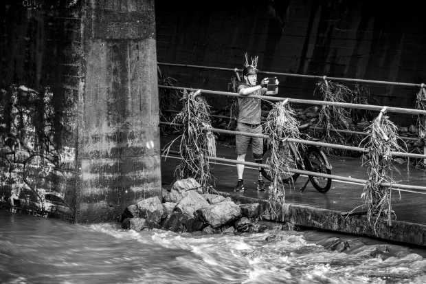 I took this photograph a couple of days after cyclone Alfred made landfall. Walking in our local area and seeing the results of the flood levels and debris it has left behind. My eye was drawn to the man’s headwear that emulated the debris left on the fence.