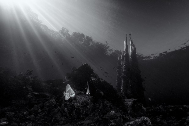 White Beach, Solomon Islands was a secret base for the Americans during WWII. When they left, they dumped their vehicles into the ocean creating a fascinating artificial reef.