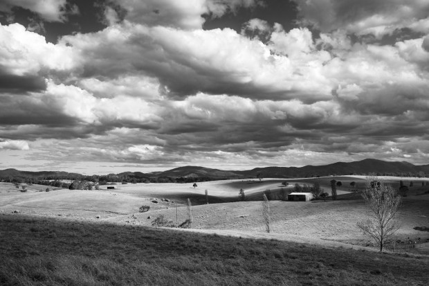 As the afternoon rolls on, so do the clouds and casting shadows over the rolling hills of Kanoona in the Bega Valley, NSW. The farm lies silent aside from ruslting grass in the light breeze and distant bleet of a sheep or two. Natural forms of undulation are contrasted by harsh lines of the structures that hint there may be more work to this farm than the visible scene.