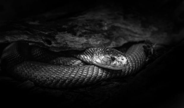 A Lesser Black Whip Snake waits for prey to arrive.
