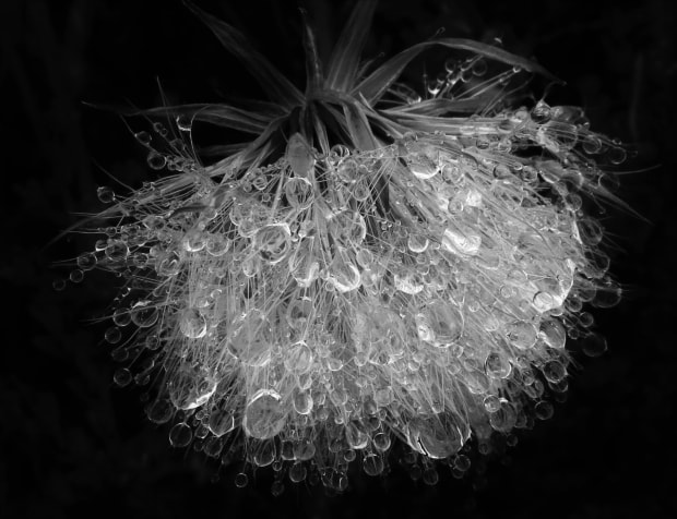 Morning dew on an alpine seedhead
