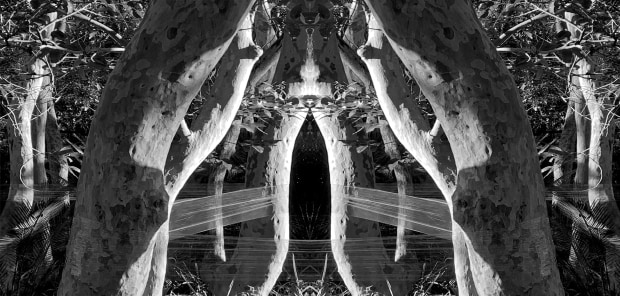 Microplastic particles can be found everywhere on the planet. In drinking water and food, in deep seas and remote deserts and mountains, they threaten both terrestrial and aquatic ecosystems. For the first time, microplastic particles have been detected in human blood and in the lungs of living people. The unnatural chemical compositions of this petrochemical consumer waste will outlive us for hundreds, if not thousands, of years. This work, made during a visit to the Mimosa Rocks National Park on the Far South Coast of New South Wales, depicts a plastic cling wrap altar which speaks to our consumeristic veneration of convenience and disposability over the beauty and bounty of the natural world.