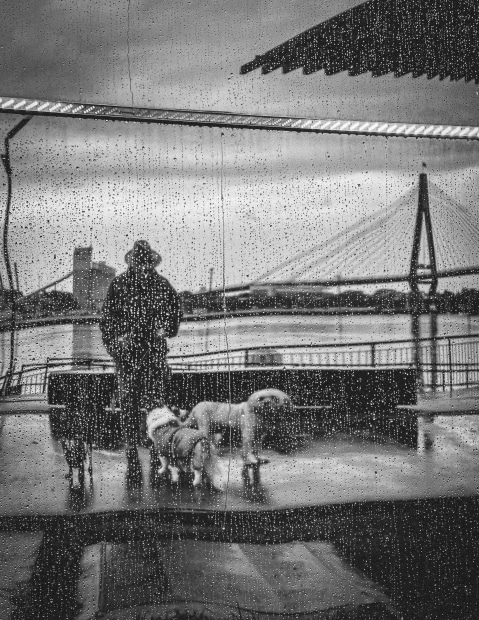 A view I regularly see in my neighbourhood of Pyrmont, NSW was transformed when I noticed it being reflected onto the curved shiny chrome of a parked food truck in the rain. When converted into a grainy black and white image I love how the overall mood, toning and texture of this composition has been intensified.