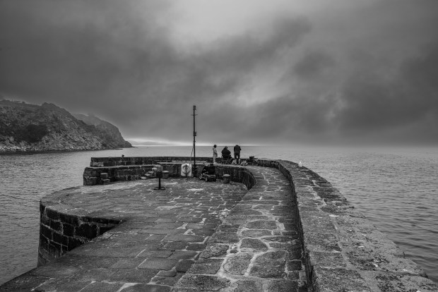 On an arm into the sea, fishers take their chances, with the fish and with the approaching storm.