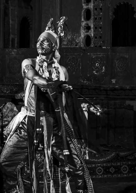 Arjuna in a ritual battle with Shiva, Udaipur, India.