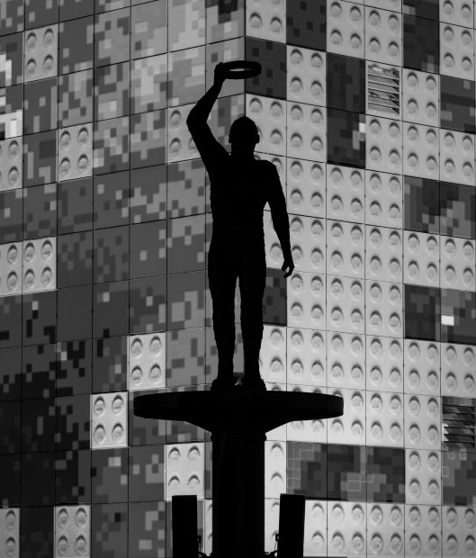 The "Astronomer" sculpture outside Questacon in Canberra is a striking piece of art made from parts of the 1925 Yale-Columbia Refractor telescope, which was destroyed in the 2003 Canberra bushfires at Mount Stromlo Observatory. I shot this view at the 2025 Enlighten Festival. I saw the possibility of a mono image when I noticed the silhouette of the sculpture created by the light projection on the wall of the building. The Lego-like shapes and textures were the bonus and added to the look and feel of a very interesting visual experience.