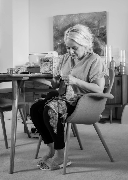 Bosnian born, Mira lived through the 1990s conflict there while studying art in Sarajevo. She came to Sydney to study fashion design and now calls Australia home. Here Mira sits in quiet meditation hand stitching the final touches to a lace garment from her first lingerie collection in 2018.