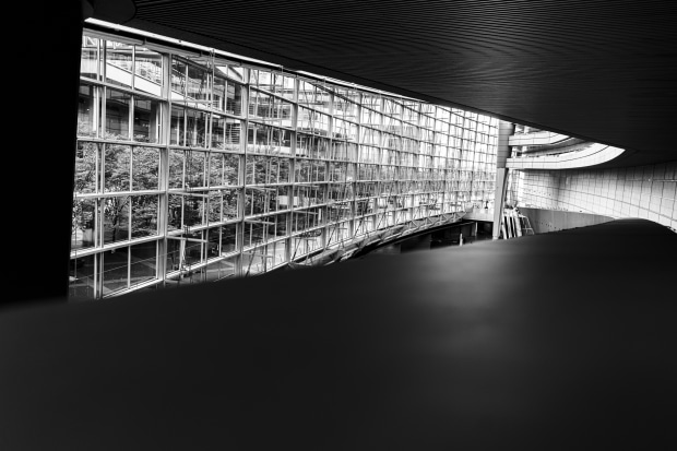 The International Forum building in Tokyo presents an interaction of light and form for an architectural image. This presentation shows the interplay between light and dark when looking out rather than up.
