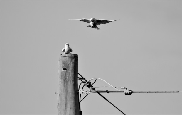 Birds gathering on powerline Valentine's day 2021