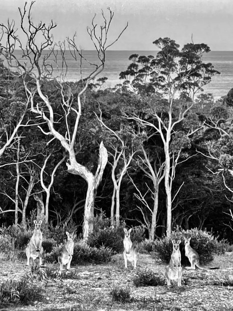 I startled these Wallabies while on a bike ride at dusk. I am amazed at their ability to stand perfectly still.
