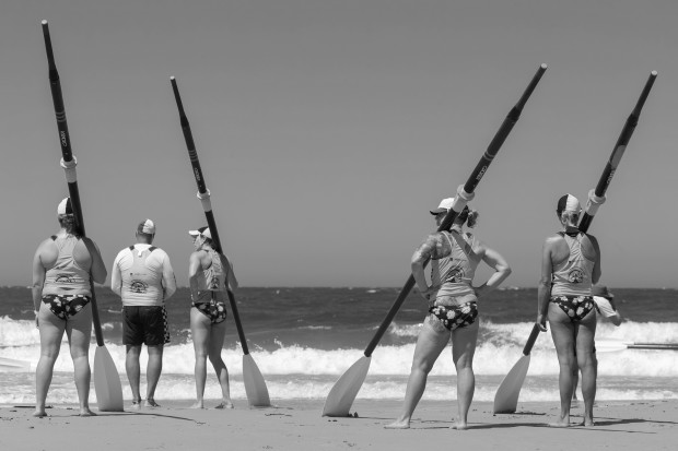 A surf boat crew preparing for their next race