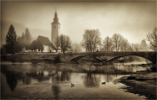 Leaving our hotel in the dark on a freezing frosty morning, we arrived at Lake Bohinj anxiously awaiting sunrise. It was the middle of Winter and no-one was around. Navigating the ice safely in the dark was a challenge but so worth the effort. As the sun came up, the mist came down and shrouded St John Church and the bridge. The mood of the scene was breathtaking