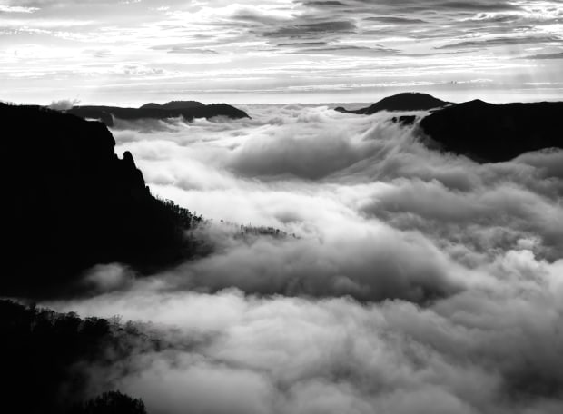 Amazing early morning cloud formations in the Grose Valley as seen from Govetts Leap Lookout.