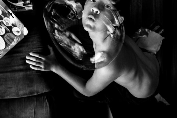 A Boy plays with bubbles. These are moments in time which will not be repeated forever. It may be the last time he plays with a bubble.
