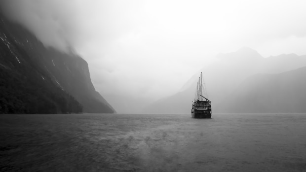 Clicked at Milford Sound, NZ it was raining heavily and experience of those mountains with water falls in abundance was a memorable one, during my cruise spotted this ship in the middle of water , although it was not an easy condition to capture with heavy rain and standing on the ship deck but was determined , waited for the right moment and taking a bit of risk on uncovered camera captured this frame
