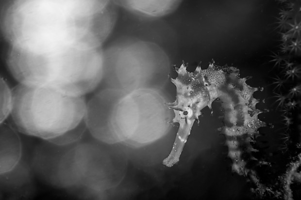 In camera double exposure. Bubble bokeh captured on the ocean surface at dusk and a seahorse shot at about 20 metres earlier that dive.
