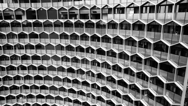 Black and White hex building in Singapore taken with UAV.