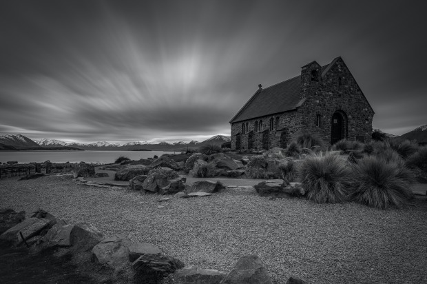 Fast moving clouds over the famous and sacred Good Shepherd Church , Lake Tekapo , New Zealand captured on a 200Sec Long exposure shot. Taken on 10/2019