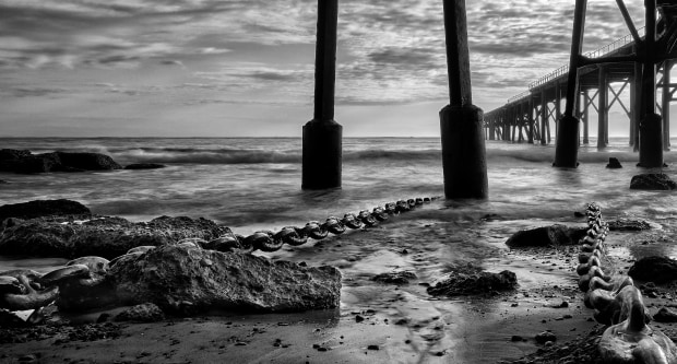The remains of old chains under the jetty at Catherine Hill Bay