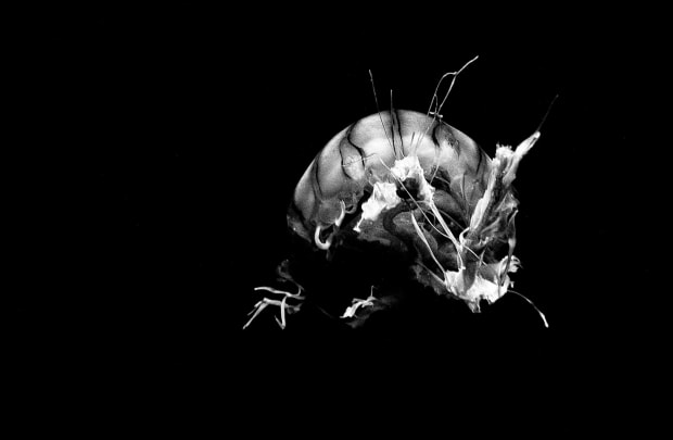 In this black and white study of a jellyfish, I explore the tension between fragility and strength, chaos and grace. The Chrysaora—a creature of translucent anatomy and rhythmic motion—becomes, in monochrome, an ethereal presence suspended in a void. The negative space surrounding the subject is as vital as the creature itself—it speaks to isolation, to depth, and to the ungraspable nature of existence.