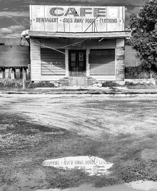 A sign of the times in many outback townships. A cafe no longer in service along the Kamilaroi Highway.