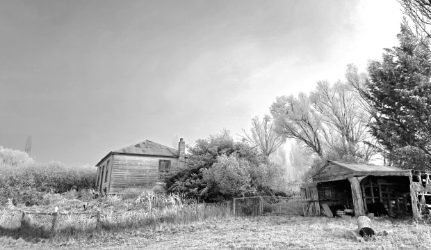 An old farm homestead in a heavy frost