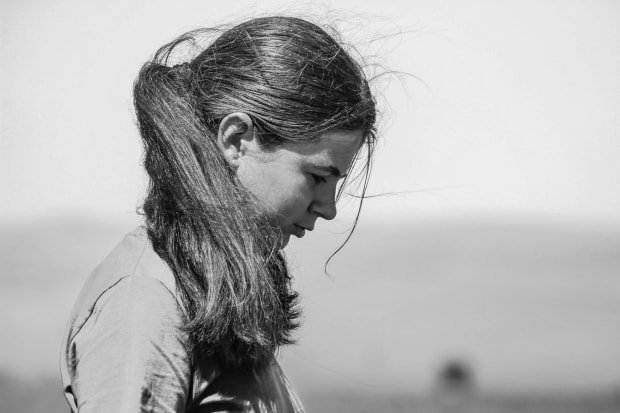 Profile view of a young girl in deep thoguht