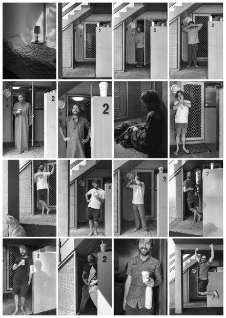 My son had arrived home from Egypt and required time in isolation. Each day I took photos of his daily coffee drop off and brief conversations with people and pets.