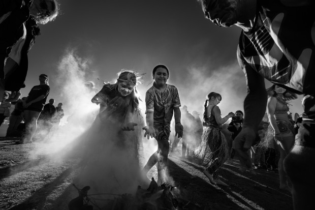 Local children take part in a traditional smoking ceremony during celebrations at the start of the Surfest Indigenous surf classic in Newcastle