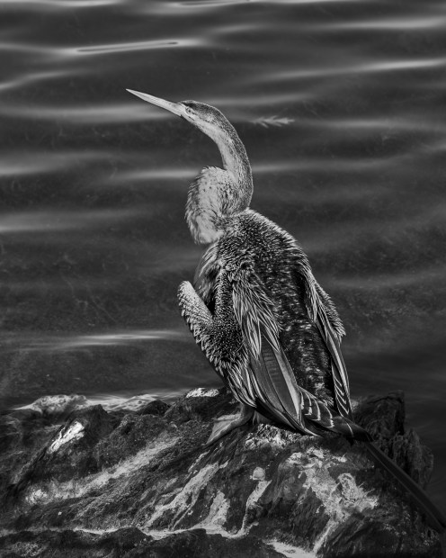 Darter bird of Lake Burley Griffin, Canberra. The intricate details come up very will in black to white!