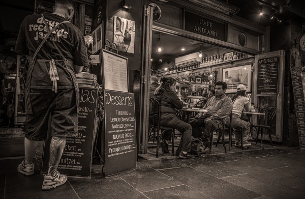 Diners wait for their dinner orders at Cafe Andiamo on De Greaves Street, Melbourne February 2026
