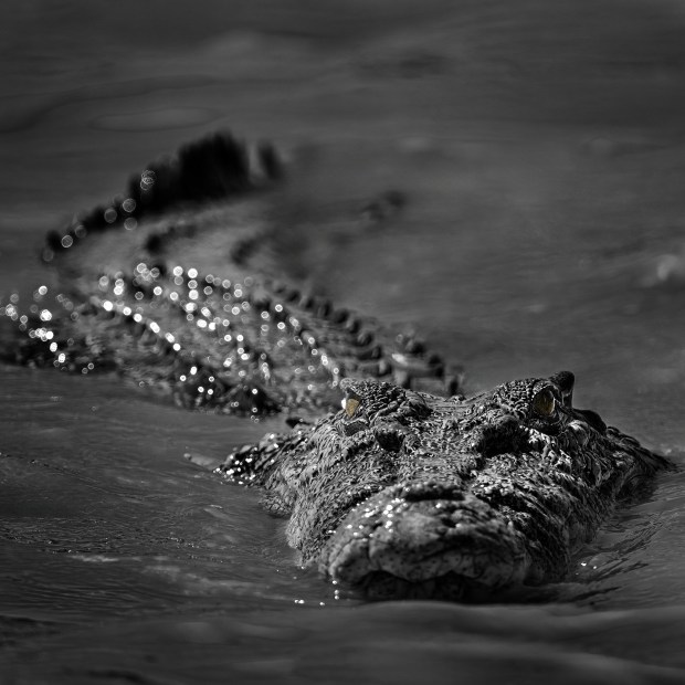 A close-up of the powerful and ancient predator, this image captures the essence of the crocodile in its natural element. Its intense gaze and water-slicked skin reflect the untamed force of nature. The shimmering droplets of water and the sharp contours of its armored body highlight the reptile’s intimidating presence, showcasing its raw power and lethal porecision