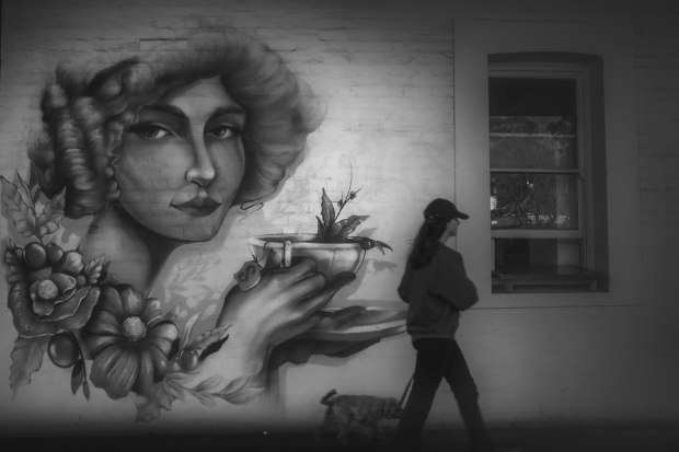 To the left of the image street art on the wall is indicative of a dreamlike state. The protagonist moves toward the window, which reflects the reality across the road as well as the work that works that go on in the kitchen behind