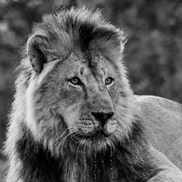 Nothing can prepare you for seeing in first light a male lion come to a water hole for a drink. This magnificent male came and sat on the edge of the water hole, had a drink and sat up and looked around. The early morning light lit up his golden mane as water droplets fell from his fur.