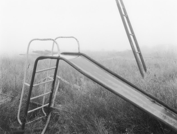 Early morning, with winter frost and fog, evoking memories of past time and place.