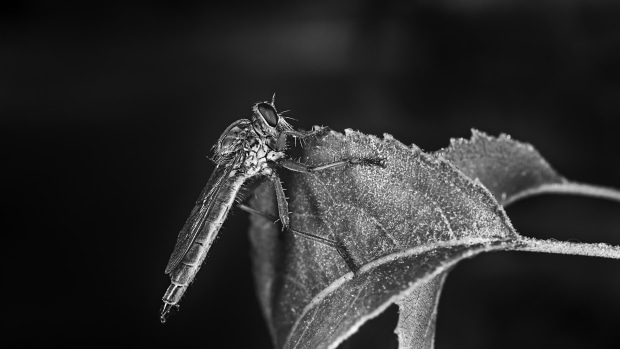 Macro photography of insects is best done early before they warm up. I found this fellow resting on a small bush.