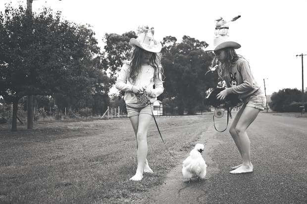 During home schooling due to social distancing for covid-19.. my girls decided to make their own Easter hats. They wanted to have a parade with more people so they decided that taking the chooks for a walk would be fitting during the current situation.