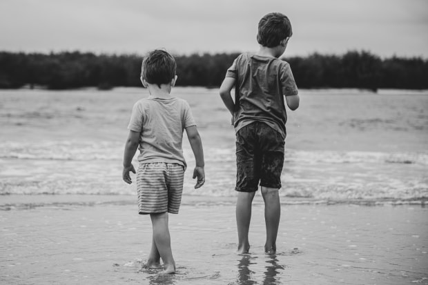 My sons loved dipping their feet into the ocean and exploring the beach on a cloudy day during our family holiday.