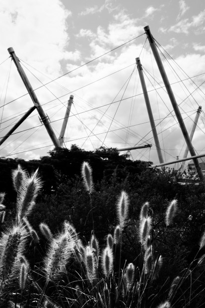 The strong man-made lines of Kurilpa Bridge juxtaposed with those of the grasses, which in the instant can be equally strong.