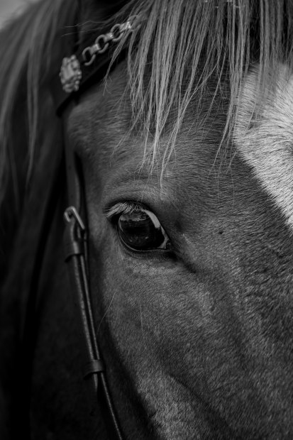 A close up of my fiances horse, Bailey, in a rare moment of calm