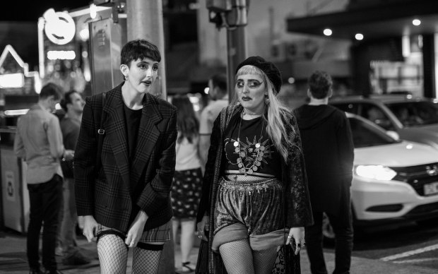 Brisbane Fortitude Valley, two young ladies clearly oblivious to my presence due to their attention being drawn to an occurrence down the street to their left